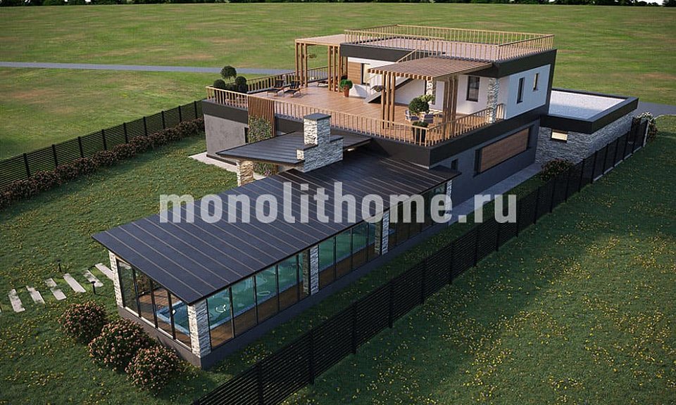 Представляем проект коттеджа высокого ценового уровня "Путилов" спроектированный нашими конструкторами по эскизам заказчика. Очевидное достоинство этого дома - просторный крытый бассейн, который подарит яркие впечатления и чувство счастья вам и вашей семье, а также позволит заниматься плаванием круглый год, не выходя из дома. Мы предлагаем устанавливать литые композитные бассейны, это практичнее, надежнее и дешевле, по сравнению с бетонными бассейнами.