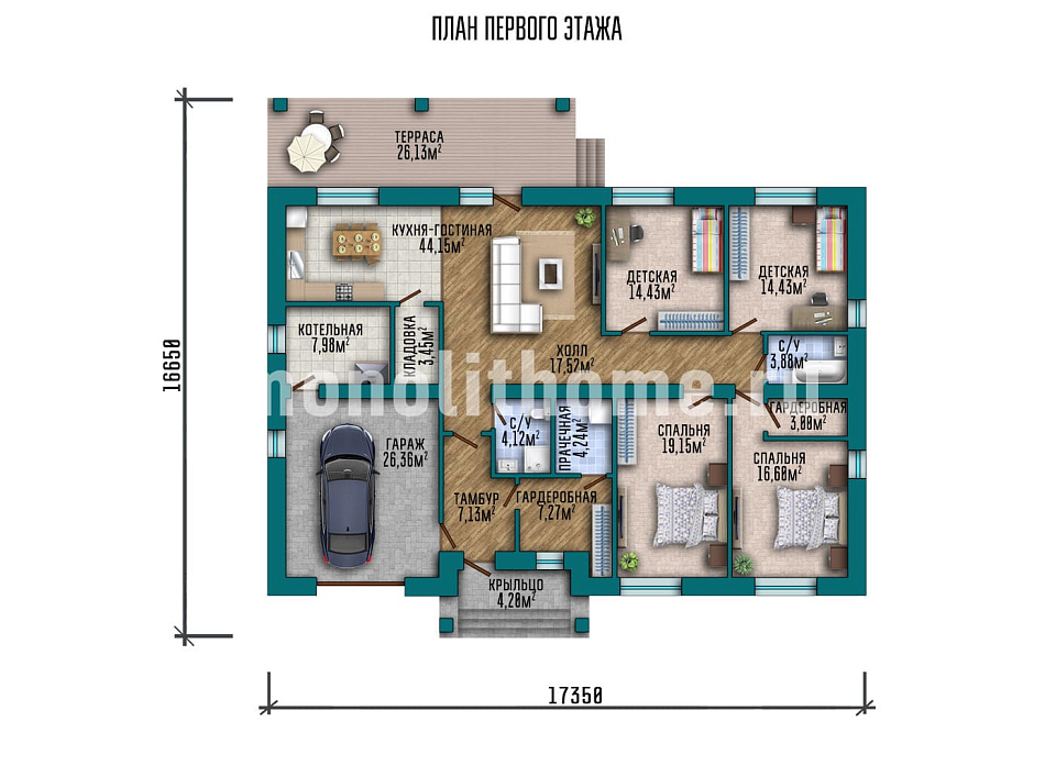 Дом из несъемной опалубки Сальери-2 одноэтажный 15х15