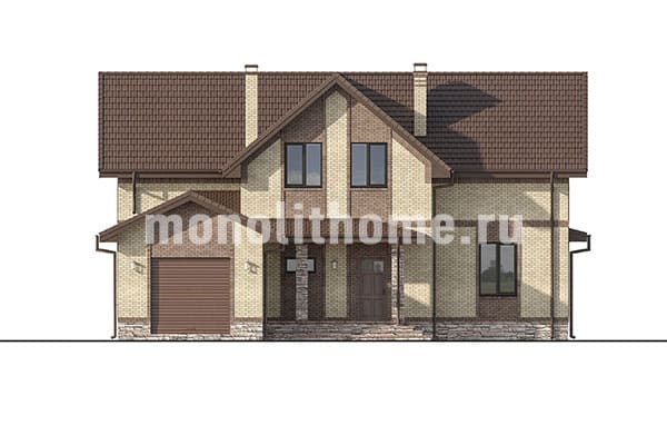 Проектом предусматривается один полный этаж плюс комфортное мансардное помещение. Компоновка комнат отличается функциональностью и учитывает размещение инженерных систем, вид из окон и расположение сторон света. Планировочные планы коттеджа включают 4 комфортных спальни и 2 санузла. Планировочная площадь коттеджа составляет 239 м2, размер кухни 28 м2. В данном коттедже мы рекомендуем применить фундамент - монолитная мелкого заложения лента с утеплением ЭППС. Этот фундамент хорошо подходит если в пятне застройки существенный перепад высоты, или хозяин хочет поднять уровень комнат выше над землей. Несущие стены этого здания - керамический кирпич. Мы можем изменить данный проект под другой материал, адаптировать планировки этажей коттеджа и рассмотреть любые другие требования заказчика.