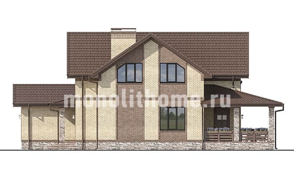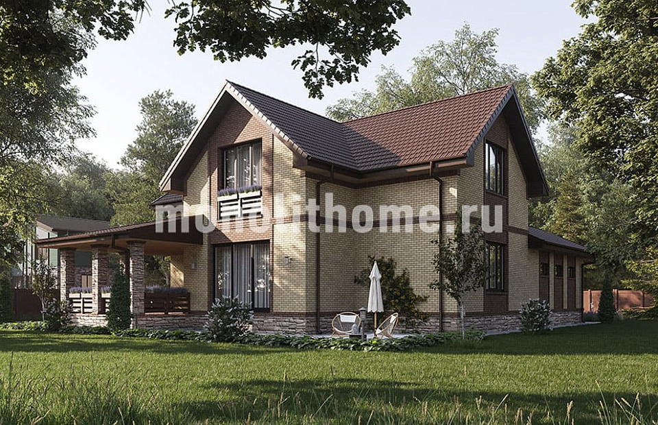 Дом из керамического кирпича Сатурн-2 одноэтажный с мансардой 14х14
