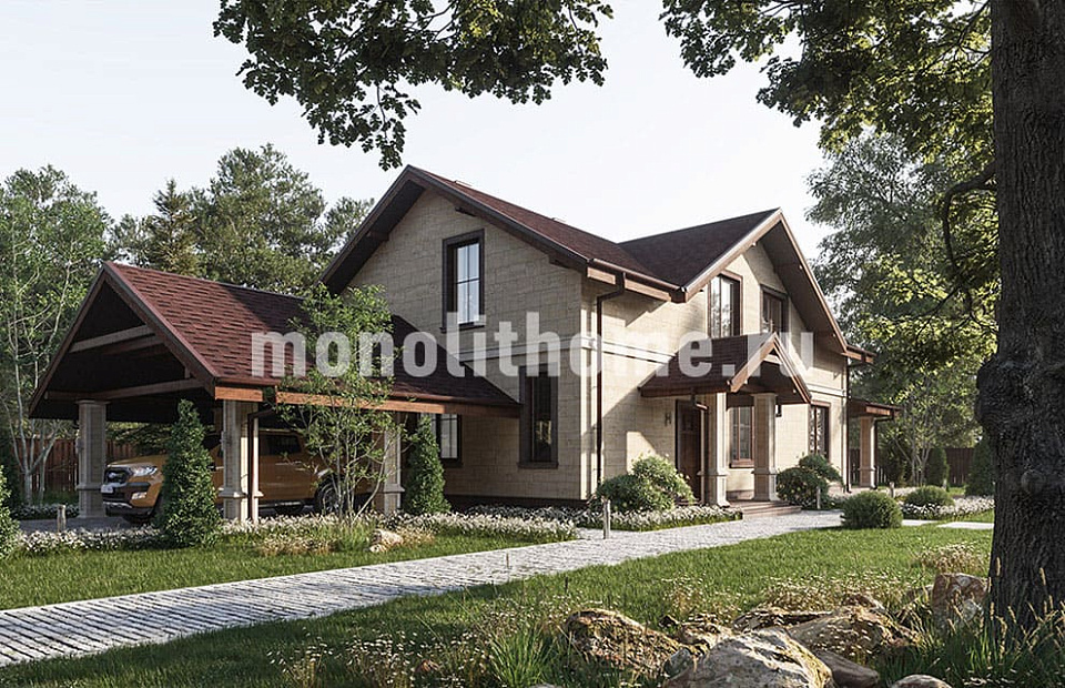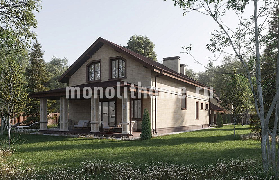 Коттедж одноэтажный плюс функциональный мансардный этаж. Планировка комнат отличается продуманностью и принимает во внимание размещение инженерных систем, вид из окон и расположение сторон света. Планировочные решения дома включают 3 комфортных спальни и 2 санузла. Площадь дома составляет 232 м2, площадь кухонного пространства 21 м2. Для этого дома мы советуем использовать тип фундамента - УШП плита. Это самый теплый фундамент, великолепно подходящий для индивидуального строительства в нашей климатической зоне. Материал несущих конструкций данного здания - газосиликат. По решению заказчика наши конструкторы поменяют проект под другой материал стен, архитекторы детализируют жилое пространство и примут во внимание любые другие пожелания заказчика.