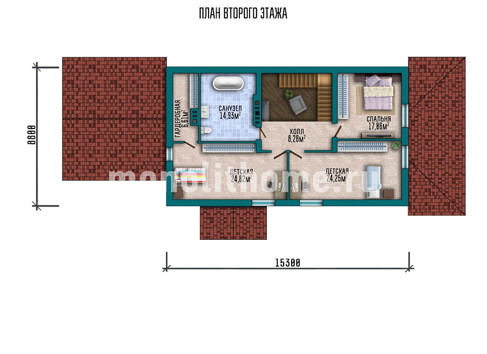 Дом из газосиликата Сварог одноэтажный с мансардой 13х13