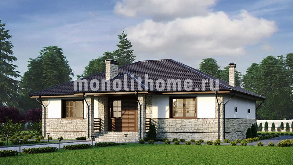 Коттедж одноэтажный с практичным чердачным помещением. Компоновка пространства дома отличается продуманностью и учитывает размещение инженерных систем, вид из окон и расположение сторон света. Проектом предусматривается 3 комфортных спальни и 1 санузел. Полезная площадь коттеджа составляет 120 м2, размер кухонного пространства 15 м2. В этом доме мы советуем применить вариант фундамента - УШП плита. Это наиболее современный фундамент, идеально подходящий для индивидуального строительства в нашем холодном климате. По проекту материал стен - СИП панели. По вашему решению наши конструкторы изменят проект под другой материал стен, архитекторы адаптируют жилое пространство и рассмотрят любые другие ваши идеи.