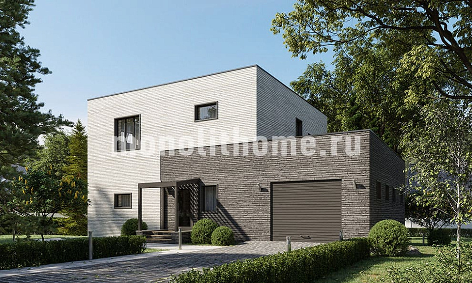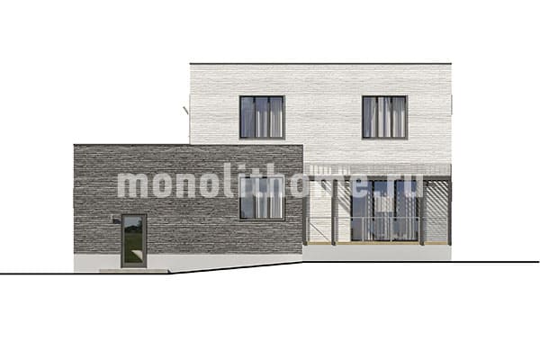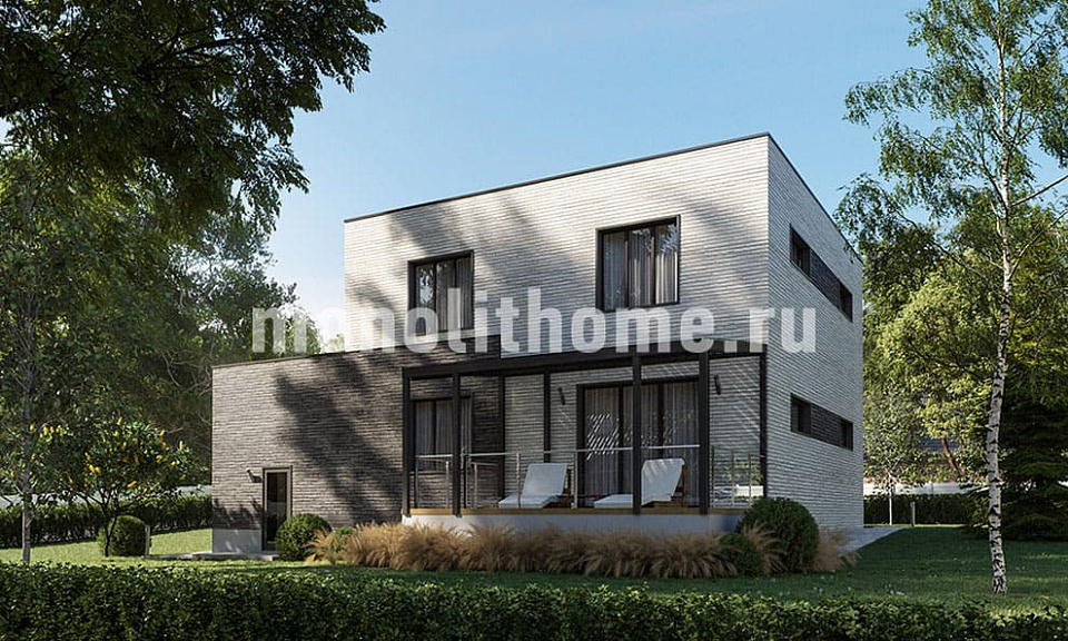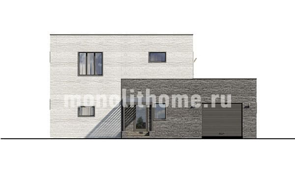 Коттедж в два этажа с плоской крышей из ПВХ мембраны. Планировка помещений выделятся продуманностью и учитывает размещение инженерных систем, вид из окон и расположение сторон света. Проект коттеджа включает 4 удобных спальни и 2 санузла. Площадь помещений составляет 206 м2, площадь кухонного пространства 19 м2. Для этого коттеджа мы предлагаем применить тип фундамента - утепленная шведская плита. Это самый современный фундамент, оптимально подходящий для загородного строительства в нашем холодном климате. Материал несущих конструкций коттеджа - керамзитобетон. В случае необходимости наши конструкторы поменяют проект под другой материал, архитекторы адаптируют планы этажей и рассмотрят другие требования заказчика.