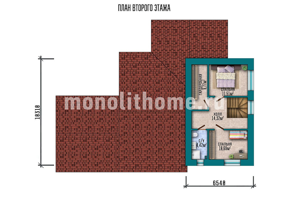 Коттедж двухэтажный с холодным чердачным помещением. Планировка внутренних помещений характеризуется разумностью и принимает во внимание размещение инженерных систем, вид из окон и расположение сторон света. Планировочные планы здания включают 4 удобных спальни и 3 санузла. Планировочная площадь помещений коттеджа - 194 м2, размер кухни 19 м2. Для этого дома мы рекомендуем использовать фундамент - монолитная мелко-заглубленная лента с утеплением ЭППС. Такой тип фундамента оптимально подходит если под домом заметный перепад высоты, или клиент просит приподнять высотную отметку пола первого этажа. По проекту материал несущих стен - монолитный каркас. По вашему решению мы можем изменить этот проект под другой материал стен, переработать планировки и рассмотреть любые другие требования заказчика.