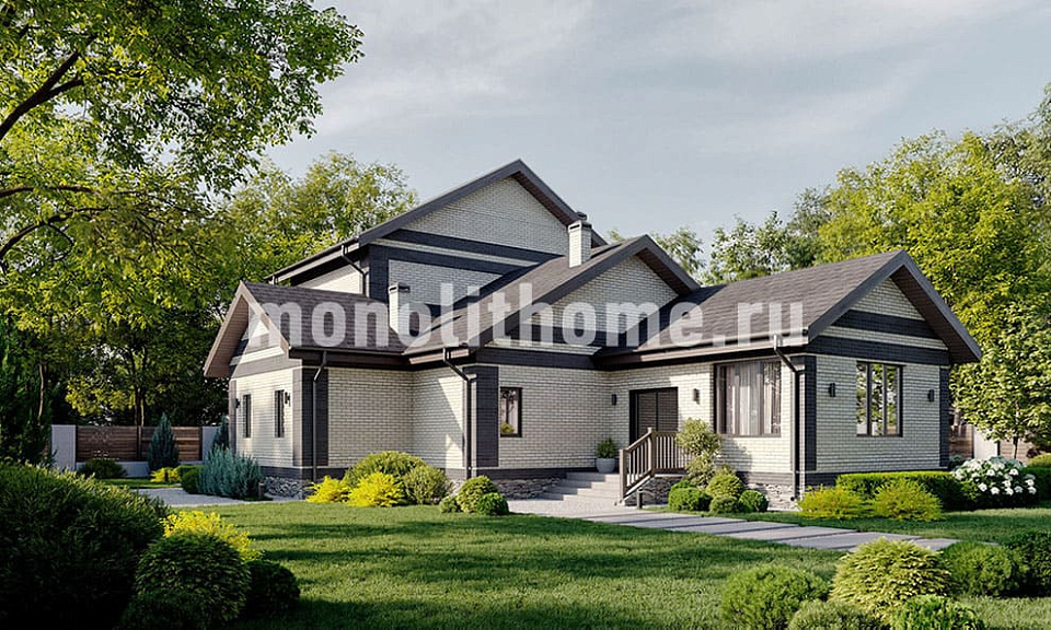 Представляем проект загородного дома высокого ценового диапазона "Степное-2" реализованный сотрудниками компании Монолит-домстрой по рекомендациям заказчика. Проект этого жизнерадостного дома сразу настраивает на позитивный лад. Оригинальные планировки в сочетании с трёхъярусной кровлей делает этот проект из ряда вон выходящим. Просторная веранда без сомнения будет излюбленным местом для проведения семейных торжеств, или обычного вечернего чаепития.