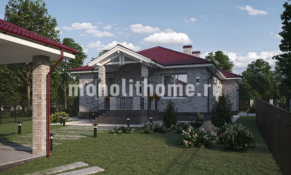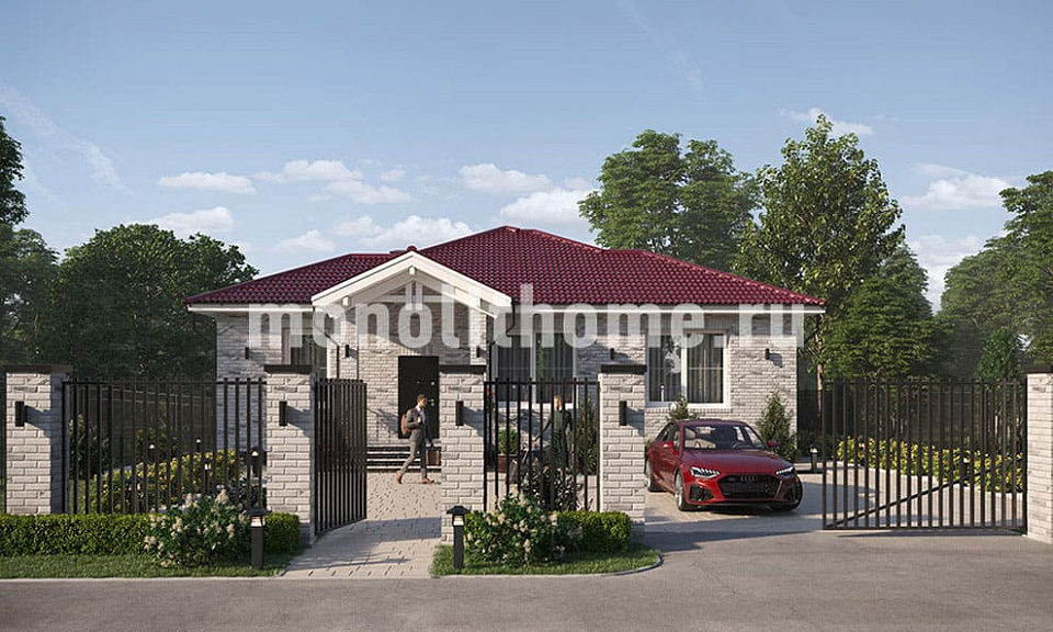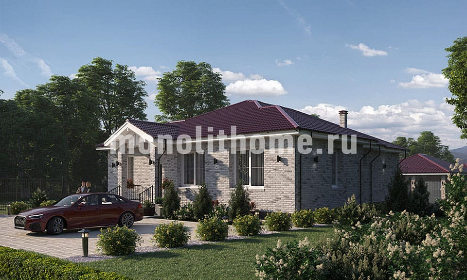 Представляем величественный коттедж "Стривер" реализованный нашими сотрудниками по рекомендациям заказчика. Эксклюзивной особенностью представленного дома является то, что строительство этого здание предусматривается не более чем в один уровень. Коттедж в один уровень удобен для пребывания людей с ограниченными возможностями и людей преклонного возраста. Вместе с тем следует заметить, что затраты на возведение такого здания будет выше по сравнению с аналогичным по площади коттеджем высотой более одного этажа.