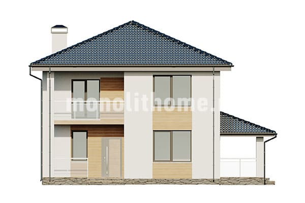 Коттедж в два полных этажа и нежилой чердак. Планировка жилых помещений характеризуется продуманностью и учитывает размещение инженерных систем, вид из окон и расположение сторон света. Проект включает 3 комфортных спальни и 2 санузла. Размер помещений здания - 205 м2, размер кухонного пространства 17 м2. В данном проекте мы предлагаем использовать вариант фундамента - УШП плита. Это наиболее теплый фундамент, оптимально подходящий для коттеджного строительства в нашем холодном климате. Материал стен этого проекта - керамзитобетон. По решению заказчика наши конструкторы изменят проект под другой материал, архитекторы адаптируют планировки этажей и рассмотрят другие ваши требования.