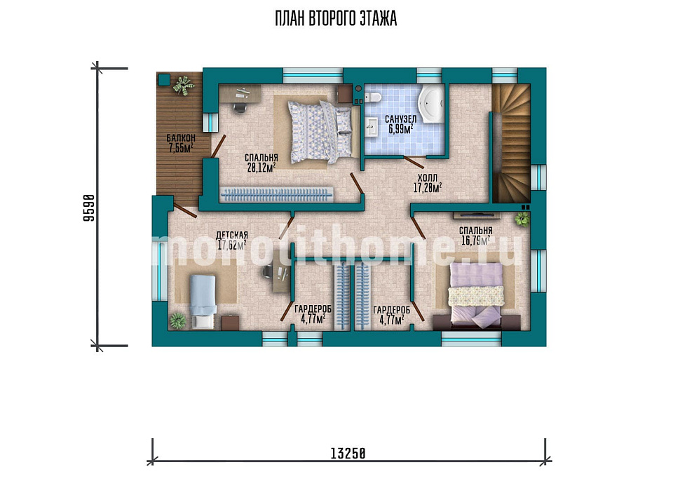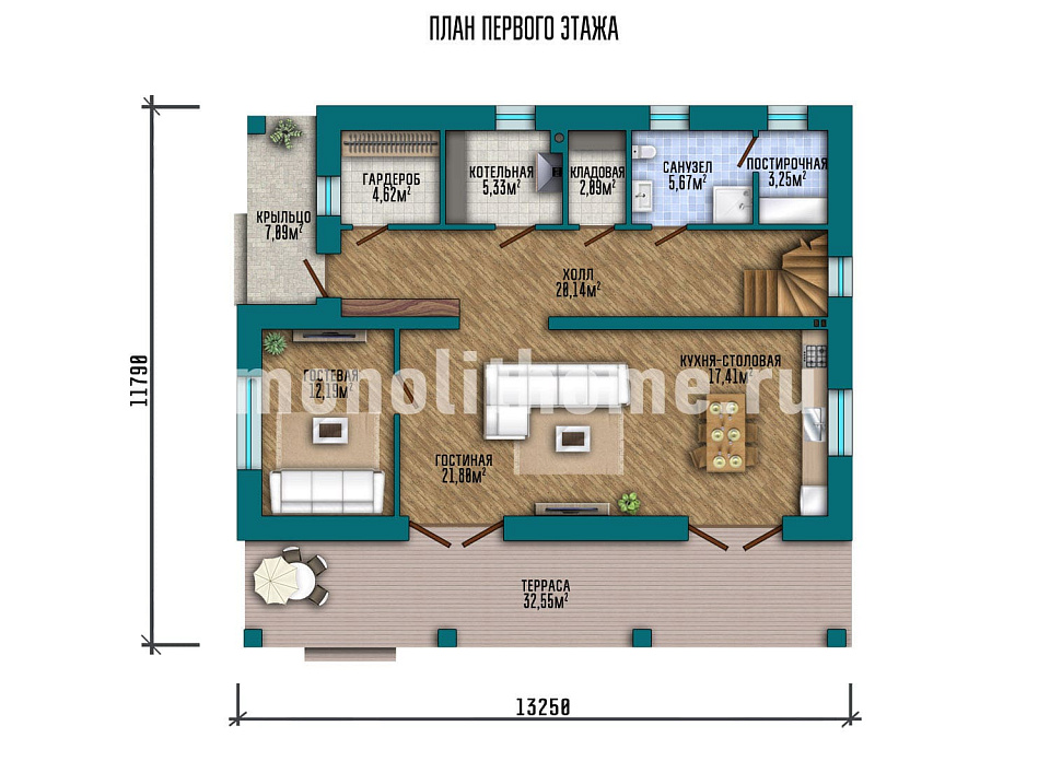 - Размер дома 13х13 м