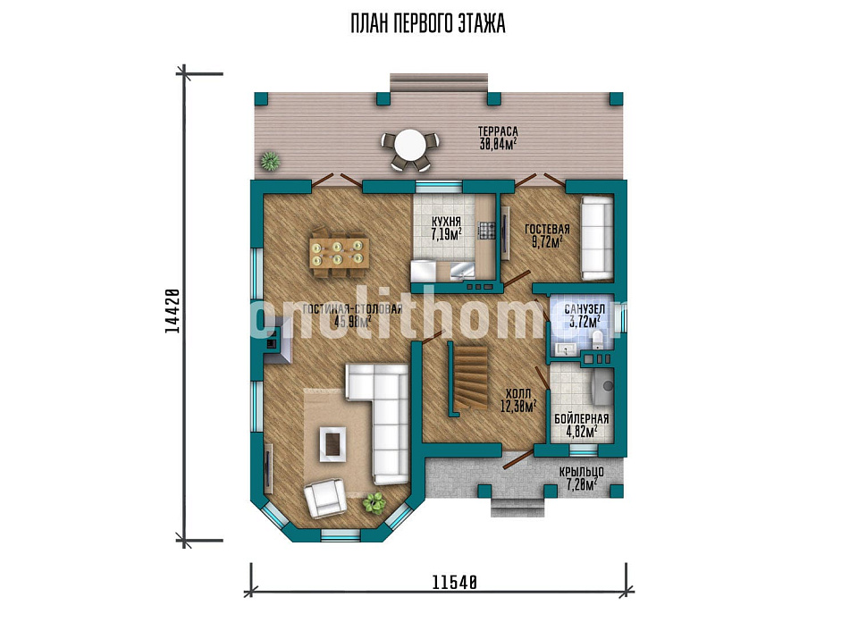 Представляем вашему вниманию дорогой дом "Турин" спроектированный нашими сотрудниками по индивидуальному заказу. Индивидуальность этого дома - удивительное чувство уюта, создаваемое роскошным камином. Помимо эстетического удовольствия камин является функциональным нагревательным прибором, который быстро обогреет коттедж промозглыми осенними вечерами.