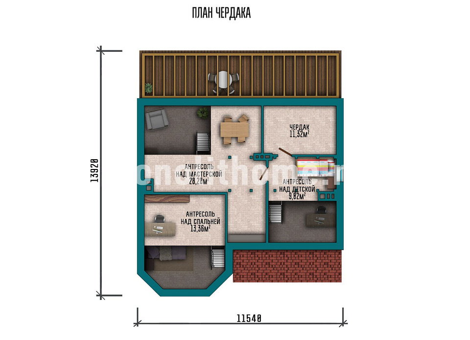 Коттедж двухэтажный и практичная мансарда. Планировка этажей отличается разумностью и принимает во внимание размещение инженерных систем, вид из окон и расположение сторон света. Поэтажные планы дома предусматривают 4 уютных спальни и 2 санузла. Полезная площадь помещений коттеджа составляет 307 м2, размер кухонного пространства 7 м2. Для этого коттеджа мы советуем применить фундамент - монолитная лента мелкого заложения утепленная Данный фундамент идеально подходит, когда под домом заметный перепад высоты, или хозяин дома просит приподнять высотную отметку первого этажа над землей. Проектом предусмотрен материал несущих конструкций - керамические блоки. В случае необходимости мы можем поменять данный проект под другой материал, переработать планировки помещений и рассмотреть другие ваши условия.