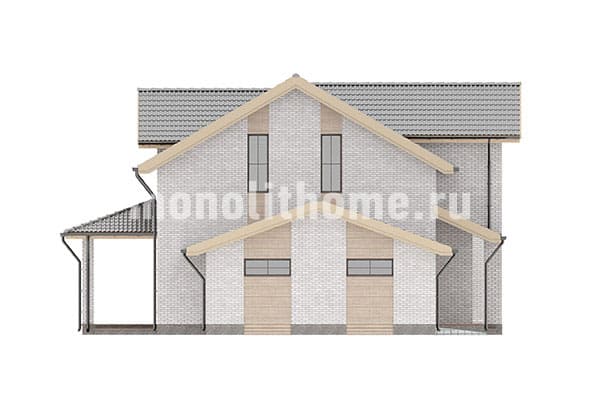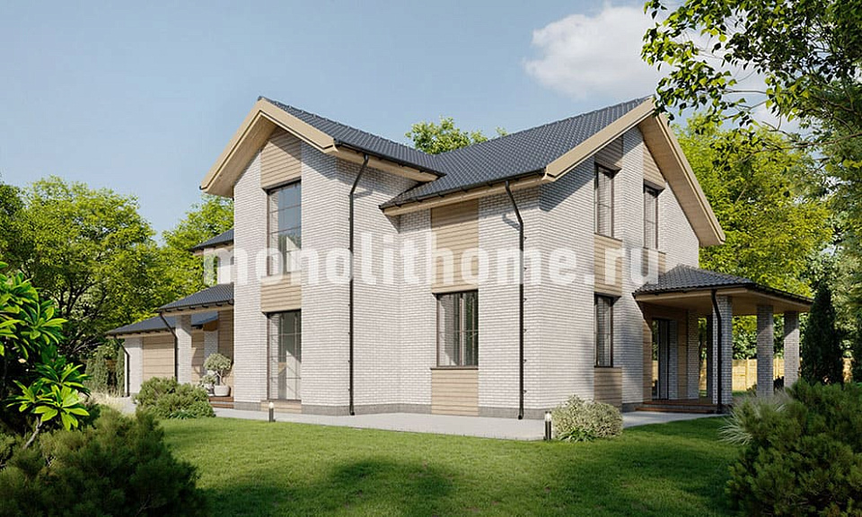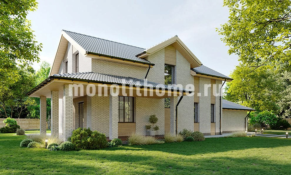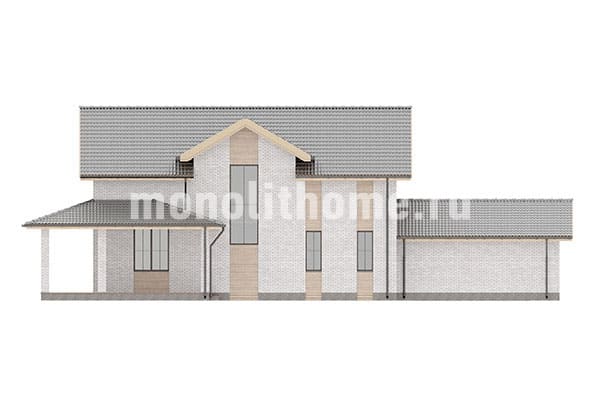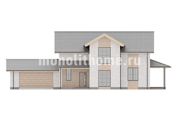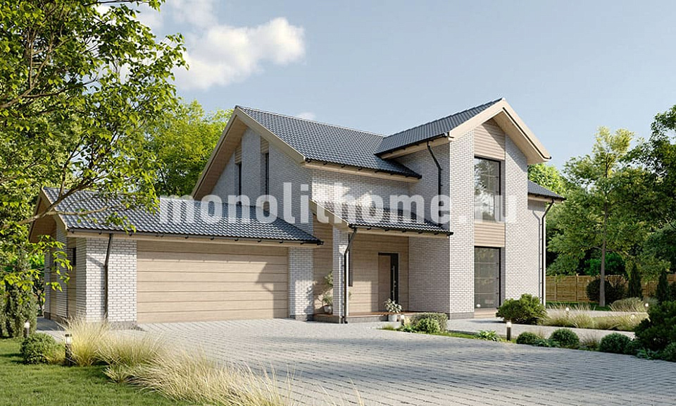 Проект коттеджа высокого ценового уровня "Фома-2" разработанный архитекторами компании Монолит-домстрой по результатам встречи с заказчиком в нашем офисе. Отличительной чертой данного дома является большой гараж на два а/м. Это разумное решение для семьи, которая владеет несколькими автомобилями. В таком гараже можно удобно поместить складские стеллажи и небольшую мастерскую, найти свободное место под садовый инвентарь и инструмент. Вместительная площадь позволит установить механическую мойку для автомобилей.