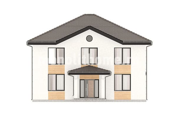 Проектом предусматривается двухэтажный коттедж и функциональный чердак. Компоновка жилых помещений выделятся разумностью и принимает во внимание размещение инженерных систем, вид из окон и расположение сторон света. Планировочные планы дома включают 4 комфортных спальни и 3 санузла. Размер всех помещений здания - 229 м2, площадь кухни 12 м2. В этом доме мы рекомендуем использовать тип фундамента - монолитная мелкого заложения утепленная лента. Этот фундамент оптимально подходит если в пятне застройки значительный перепад высоты, или наш заказчик просит приподнять уровень помещений выше над землей. Материал несущих конструкций этого здания - газосиликат. По вашему решению мы можем переделать проект под другой материал стен, актуализировать планы этажей дома и принять по внимание другие условия заказчика.