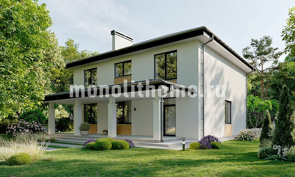 Представляем проект частного дома высокой ценовой категории "Фагот" реализованный архитекторами компании Монолит-домстрой по рекомендациям заказчика. Этот респектабельный коттедж привлекает к себе внимание светлым жизнерадостным оттенком фасадного дизайна. Продуманные планировки привнесут ощущения полного комфорта и достаточности, а огромная терраса никого не оставит равнодушным. Эта терраса всегда будет притягивать к себе всю семью и гостей для праздничного обеда или обычного чаепития.