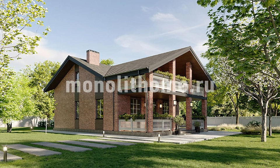 Дом из полнотелого кирпича Хром-2 одноэтажный с мансардой 13х13