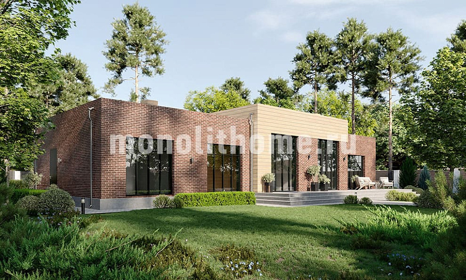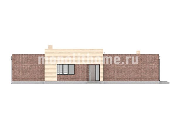 Проектом предусматривается одноэтажное строение с плоской крышей. Планировка комнат отличается функциональностью и учитывает размещение инженерных систем, вид из окон и расположение сторон света. Планировочные решения предусматривают 3 удобных спальни и 2 санузла. Полезная площадь дома составляет 169 м2, размер кухонного пространства 15 м2. В данном коттедже мы рекомендуем применить тип фундамента - бетонная лента мелко-заглубленная с утеплением ЭППС Такой фундамент оптимально подходит если под домом заметный перепад высоты рельефа, или заказчик требует приподнять над землей высотную отметку первого этажа. Материал несущих стен по проекту - пеноблоки. По вашему решению мы можем поменять этот проект под другой материал, переработать планировки помещений коттеджа и рассмотреть любые другие ваши требования.