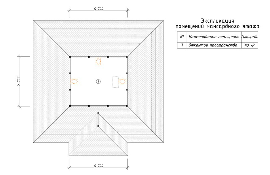 Дом из клееного бруса Полтава-6 одноэтажный с мансардой 10х10