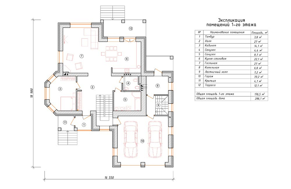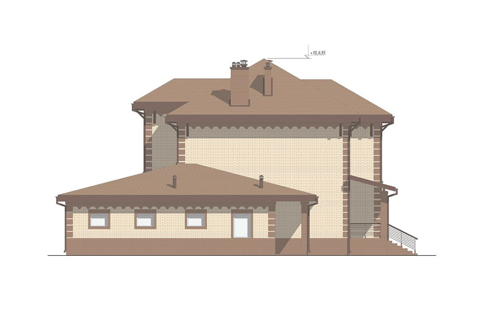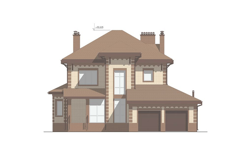Дом в два этажа плюс функциональный чердак. Планировка помещений характеризуется функциональностью и учитывает размещение инженерных систем, вид из окон и расположение сторон света. Проект включает 3 комфортных спальни и 4 санузла. Размер всех помещений дома составляет 286 м2, размер кухонного пространства 22 м2. Для этого дома мы советуем применить вариант фундамента - монолитная армированная плита с утеплением толщиной 300 мм. Это простой и наиболее экономически целесообразный тип фундамент из всех. По проекту материал несущих стен коттеджа - щелевой кирпич. По вашему решению наши конструкторы поменяют этот проект под другой материал стен, архитекторы актуализируют планировки и рассмотрят любые другие пожелания заказчика.