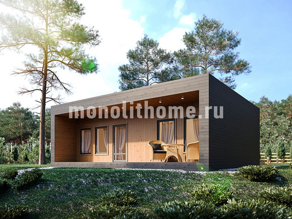 Дом из щелевого кирпича Наутилус одноэтажный 8х8