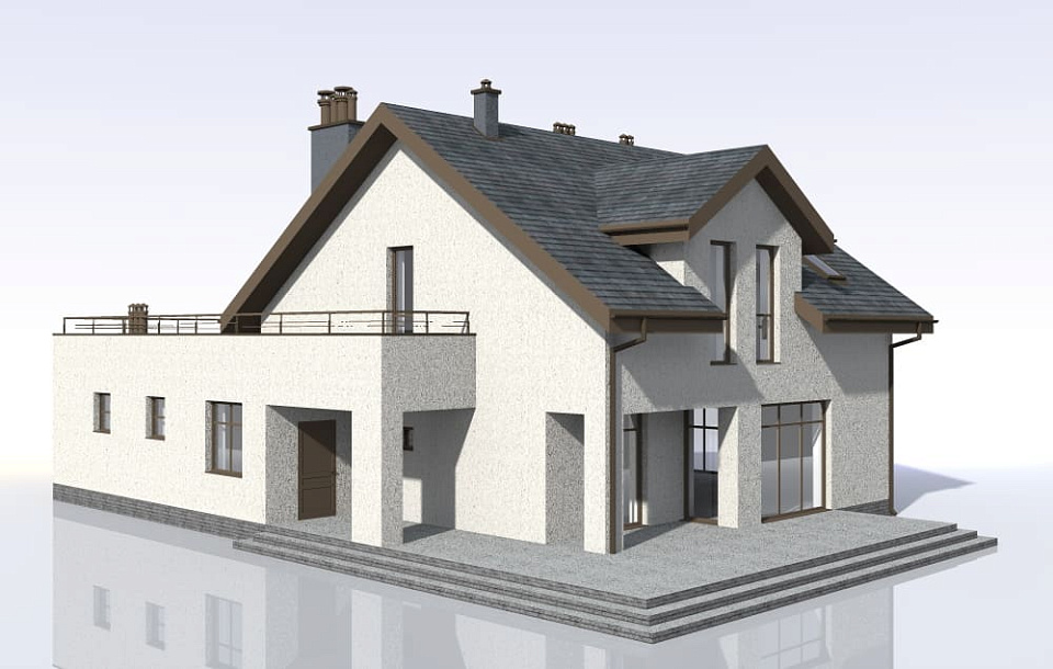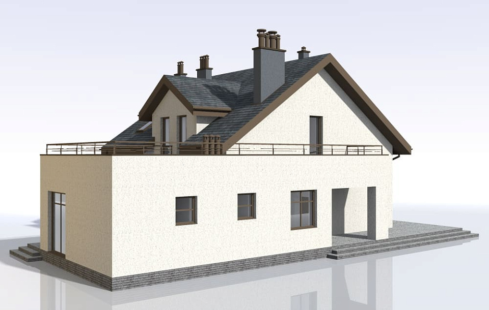 Проект одноэтажный и практичный мансардный этаж. Планировка пространства дома характеризуется продуманностью и учитывает размещение инженерных систем, вид из окон и расположение сторон света. Планировка включает 3 удобных спальни и 4 санузла. Размер всех помещений здания составляет 337 м2, размер кухни 9 м2. В данном проекте мы предусматриваем тип фундамента - монолитная мелко-заглубленная лента с утеплением. Этот вариант фундамента хорошо подходит, когда под домом большой перепад высоты рельефа, или клиент хочет поднять выше уровень комнат первого этажа. Материал несущих конструкций данного проекта - керамический кирпич. По вашему решению наши конструкторы поменяют проект под другой материал несущих конструкций, архитекторы уточнят жилое пространство и учтут другие пожелания заказчика.