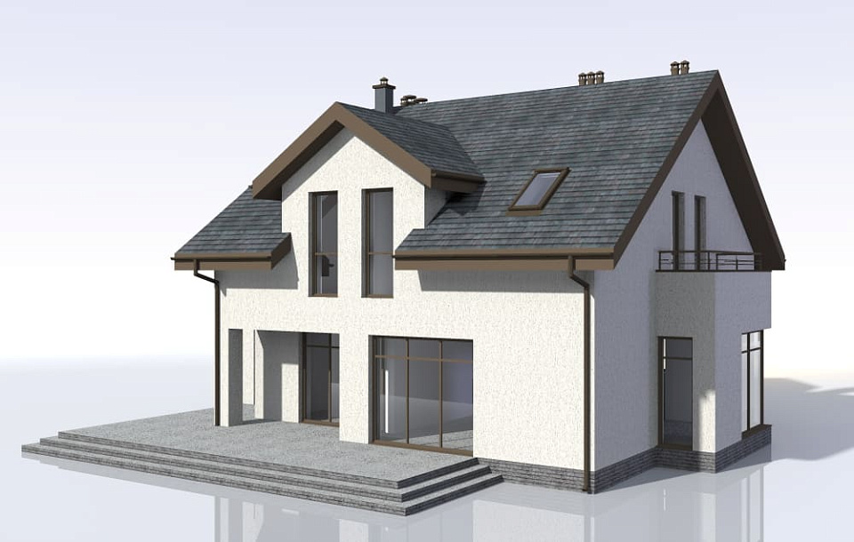 Дом из керамического кирпича Шейк одноэтажный с мансардой 15х15