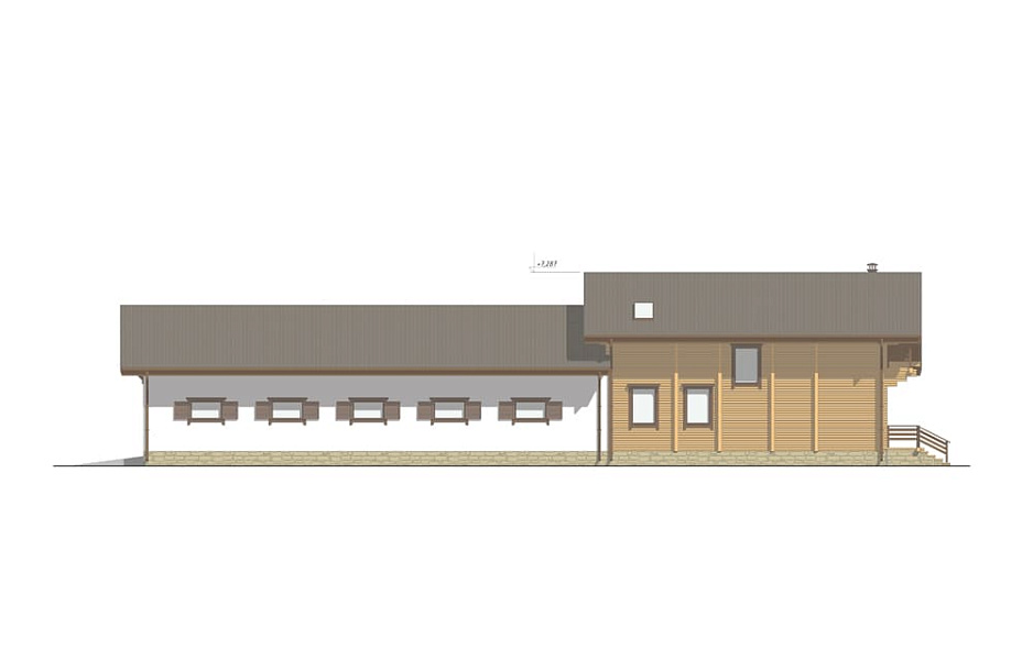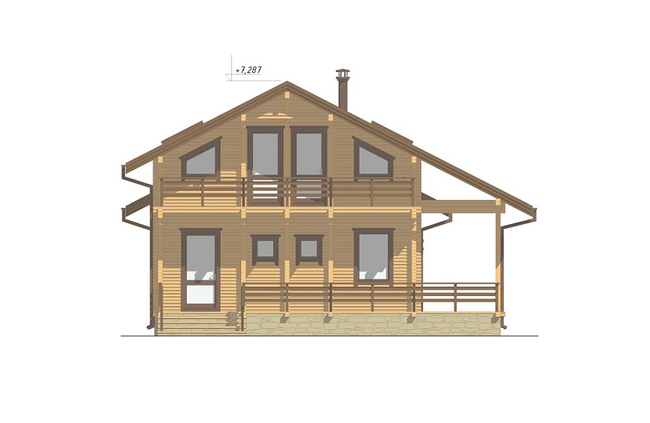 Дом из оцилиндрованного бревна Хронос одноэтажный с мансардой 15х15