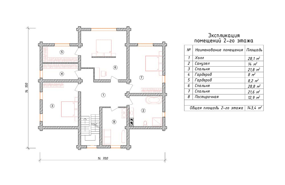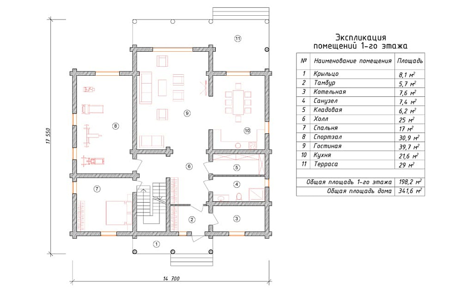Проект в два этажа плюс полезный чердак. Компоновка внутреннего пространства характеризуется разумностью и учитывает размещение инженерных систем, вид из окон и расположение сторон света. Поэтажные планы включают 4 комфортных спальни и 2 санузла. Размер всех помещений - 341 м2, размер кухни 21 м2. В данном случае мы предусматриваем вариант фундамента - УШП фундамент. Это самый современный фундамент, великолепно подходящий для загородного строительства в нашем холодном климате. Материал стен данного дома - оцилиндрованное бревно. По решению заказчика мы можем изменить проект под другой материал несущих конструкций, уточнить планировки помещений коттеджа и принять по внимание любые другие пожелания заказчика.