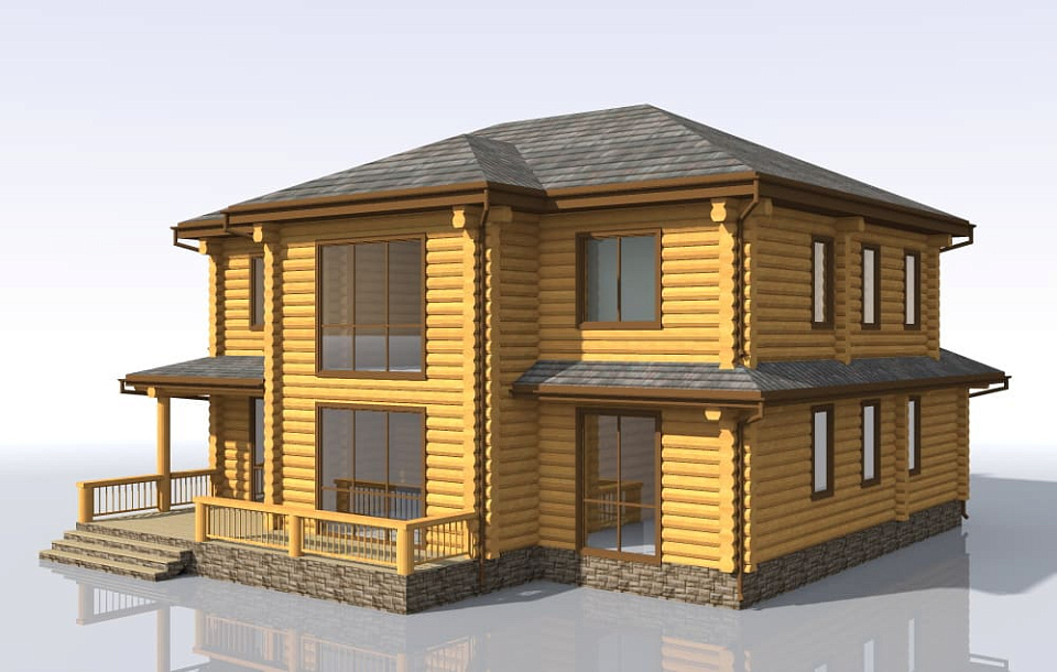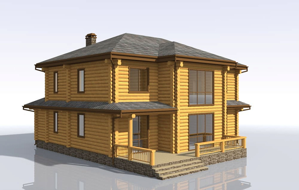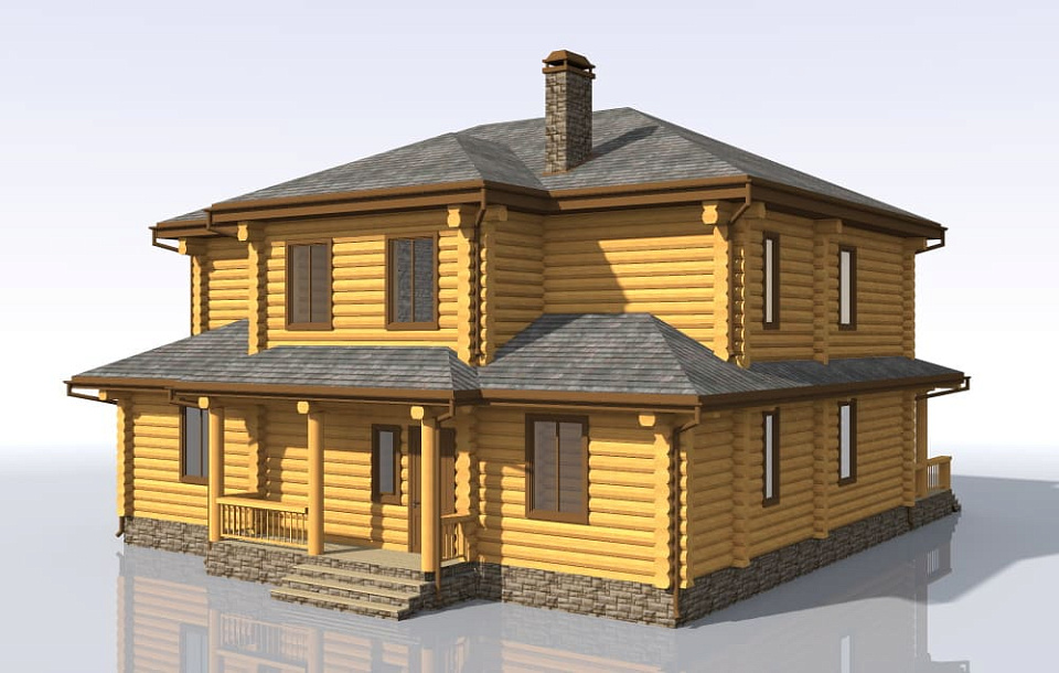 Дом из оцилиндрованного бревна Гелиос-2 двухэтажный 15х15
