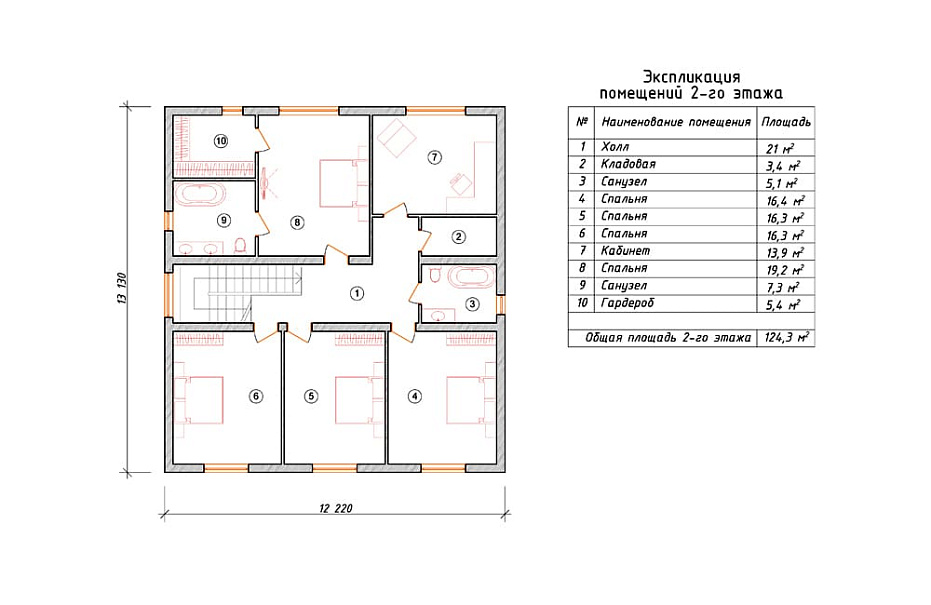 Дом из клееного бруса Стрелец-2 двухэтажный 15х15