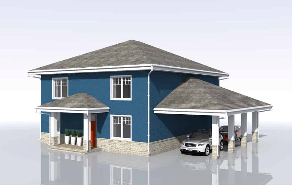 Дом из газобетона Вешки 3 двухэтажный 15х15