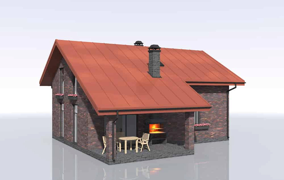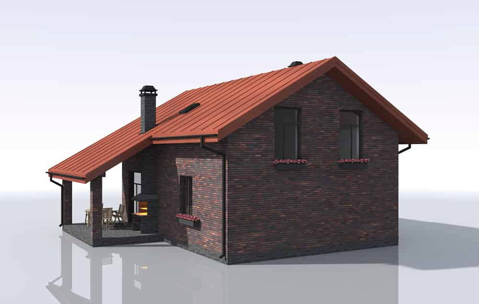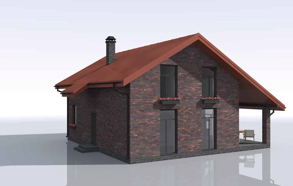 Дом из щелевого кирпича Арес-2 одноэтажный с мансардой 11х11