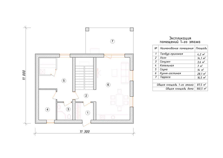 - Размер дома 11х11 м