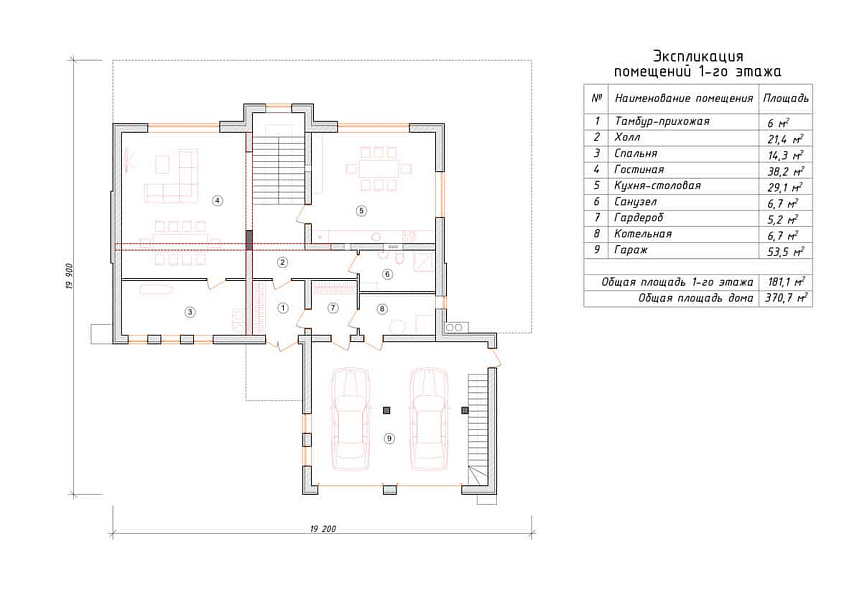 - Размер дома 15х15 м