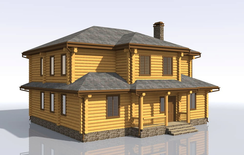 Дом из оцилиндрованного бревна Гелиос-2 двухэтажный 15х15