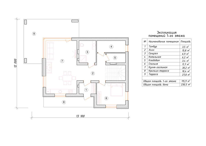 Дом из арболита Богарт-7 двухэтажный 13х13