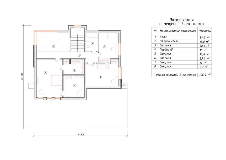 Дом из газобетона Авеста-4 двухэтажный 15х15
