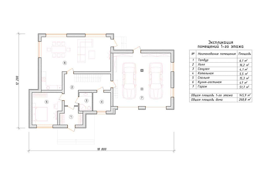 Дом из газобетона Гриндерс-1 трехэтажный 15х15