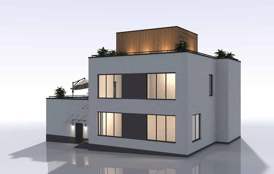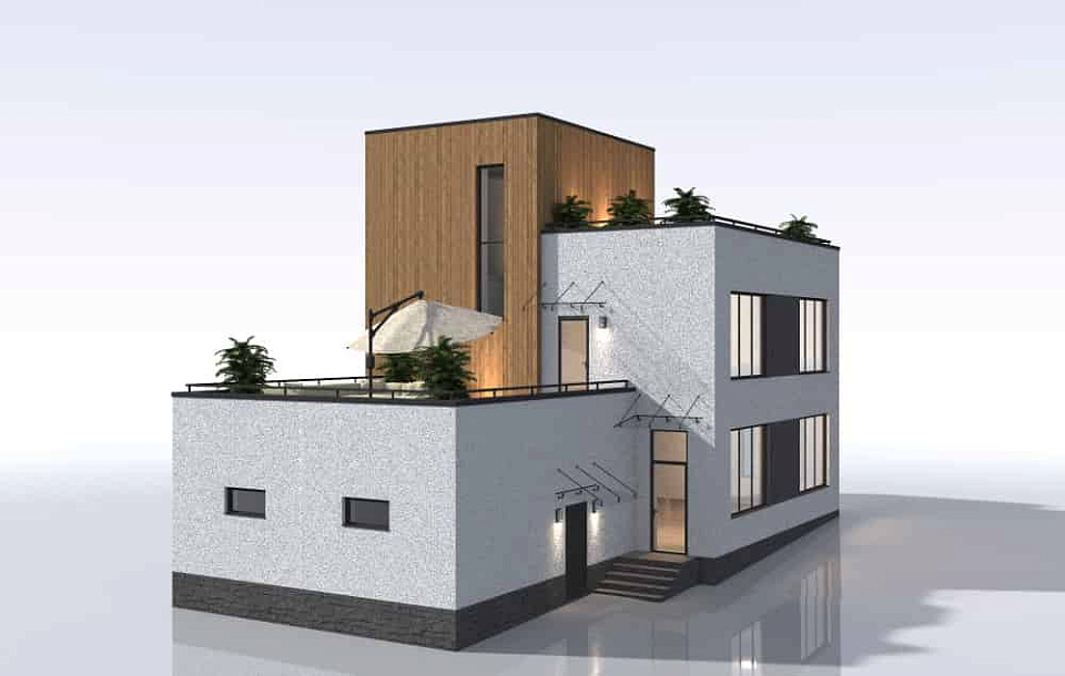 Дом из монолитного полистиролбетона Берген трехэтажный 10x12