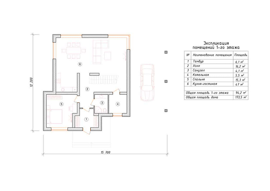 - Размер дома 15х15 м