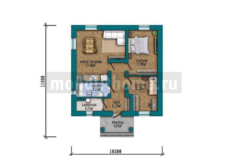 Дом из керамических блоков Валун 2 одноэтажный 9x12