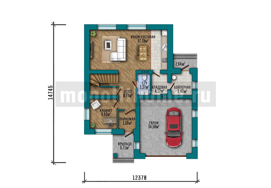 Дом из газобетона Авен 2 двухэтажный 12х12