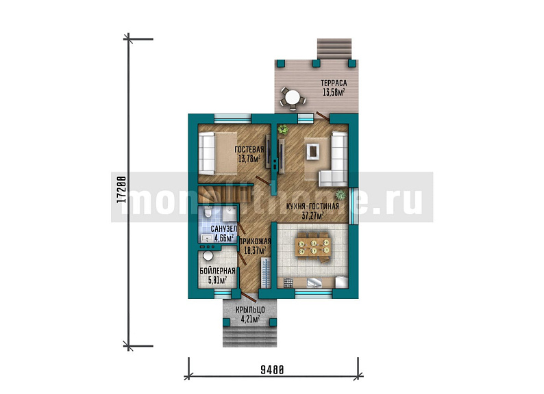 Дом из теплоблоков Карпаты 1 одноэтажный с мансардой 9х9