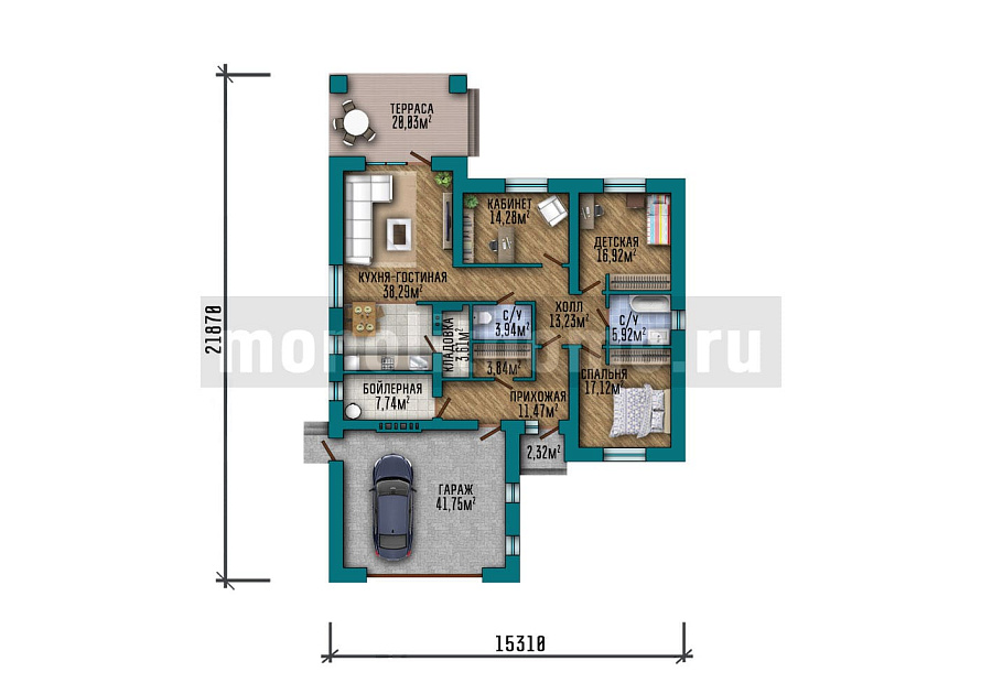 Дом из керамического кирпича Арвен одноэтажный 13х13