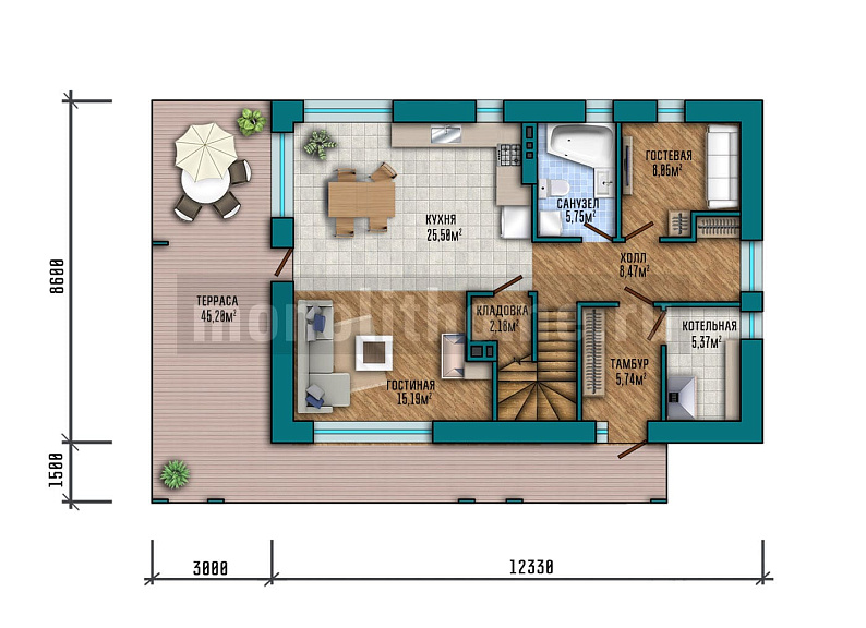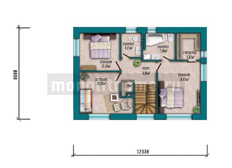 - Размер дома 13х13 м
