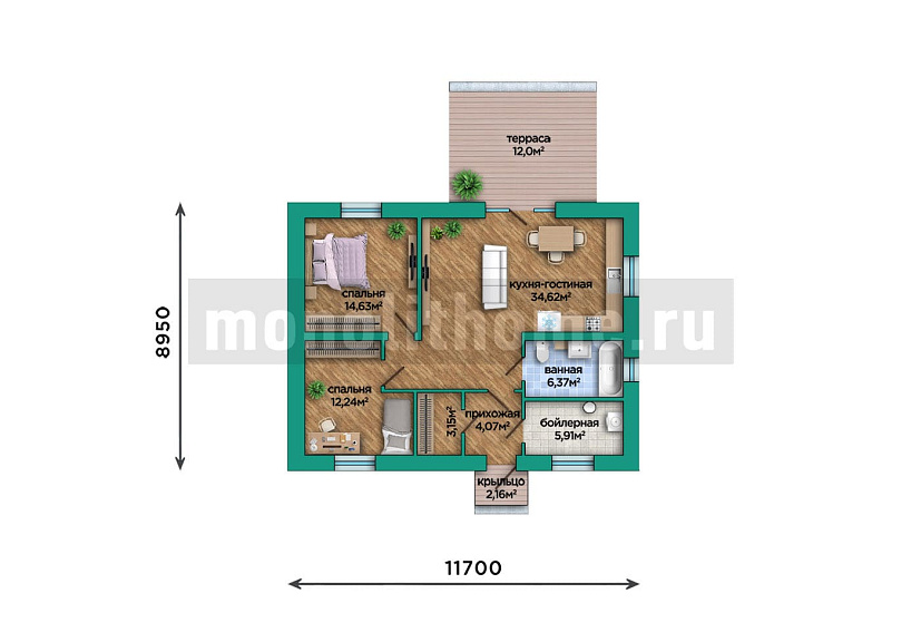 Дом из керамических блоков Валун 2 одноэтажный 9x12
