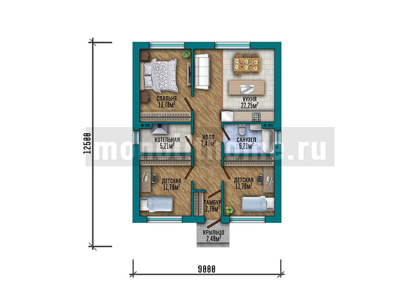 Дом из керамических блоков Камбрис одноэтажный 9x12