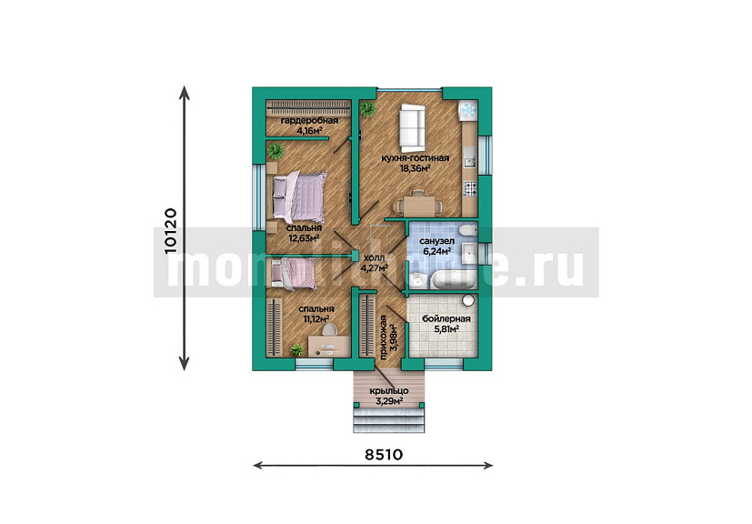 Дом из пеноблоков Бравен 2 одноэтажный 8x11
