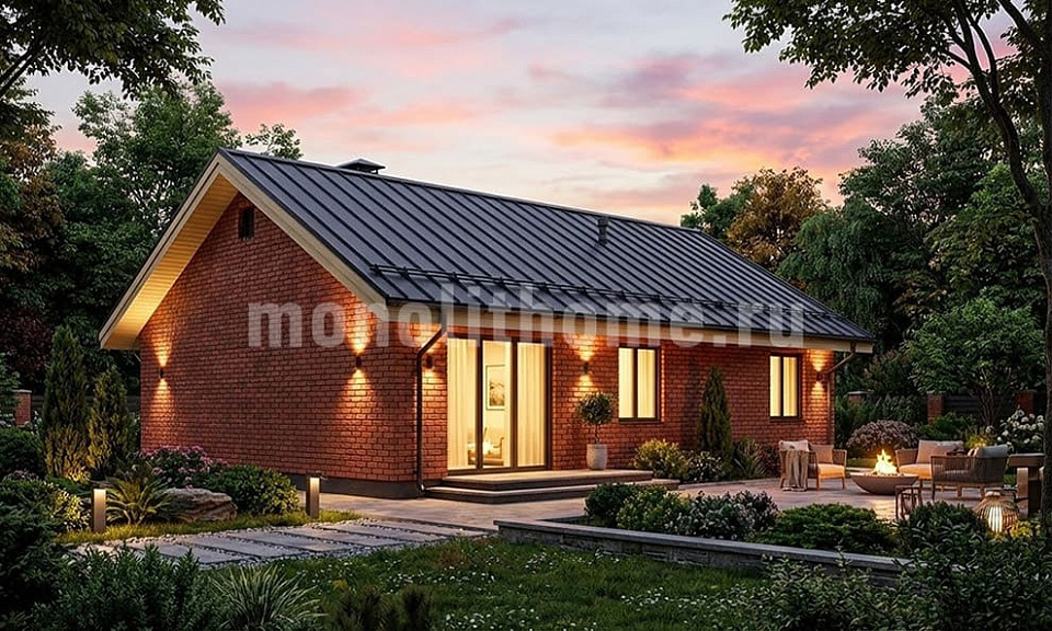 Дом из газобетона Ландшафт одноэтажный 8x12