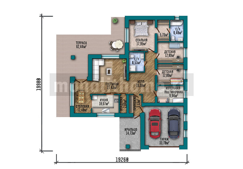 Дом из газосиликата Илирик 2 одноэтажный 15х15