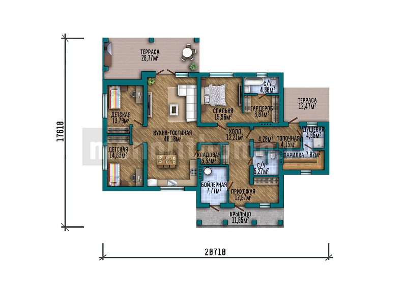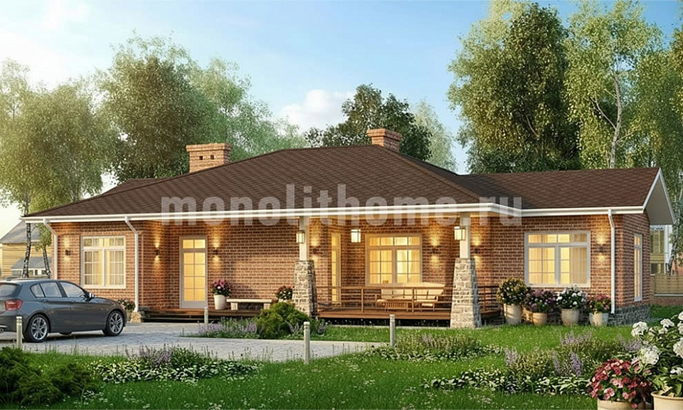 Дом из газобетона Илирик одноэтажный 15х15
